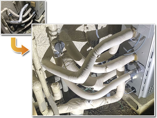 発売初期に設置された現場では、排水処理が十分でないケースも見られました。今回は配管経路をあらためて確認し、適切な排水位置へ再接続工事を実施しています。見えない部分の確実な処理こそが、長く安心して使える環境を支えます。