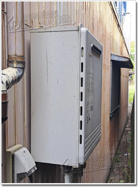 また、神奈川県横浜市磯子区T様邸のガス給湯器は目の前がお隣様との境界の擁壁があったため、排気熱が前に行かないようにオプション 上方排気カバーWOP-8301も設置しました。