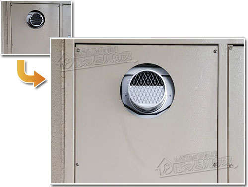 この機種は、縦長の筐体形状と上部に配置された丸型排気口が特徴です。