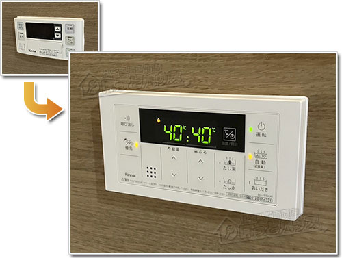 既存のリンナイ製ガス給湯器「 RUF-A2005SAW(B) 」は5年前に製造された比較的新しい機種ですが、オートタイプではなくフルオートタイプへグレードアップされたいということでこの度ご依頼をいただきました。