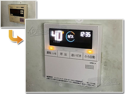 新しい本体は旧型リモコンと互換性がないため、浴室・台所のリモコンも同時に交換しています。