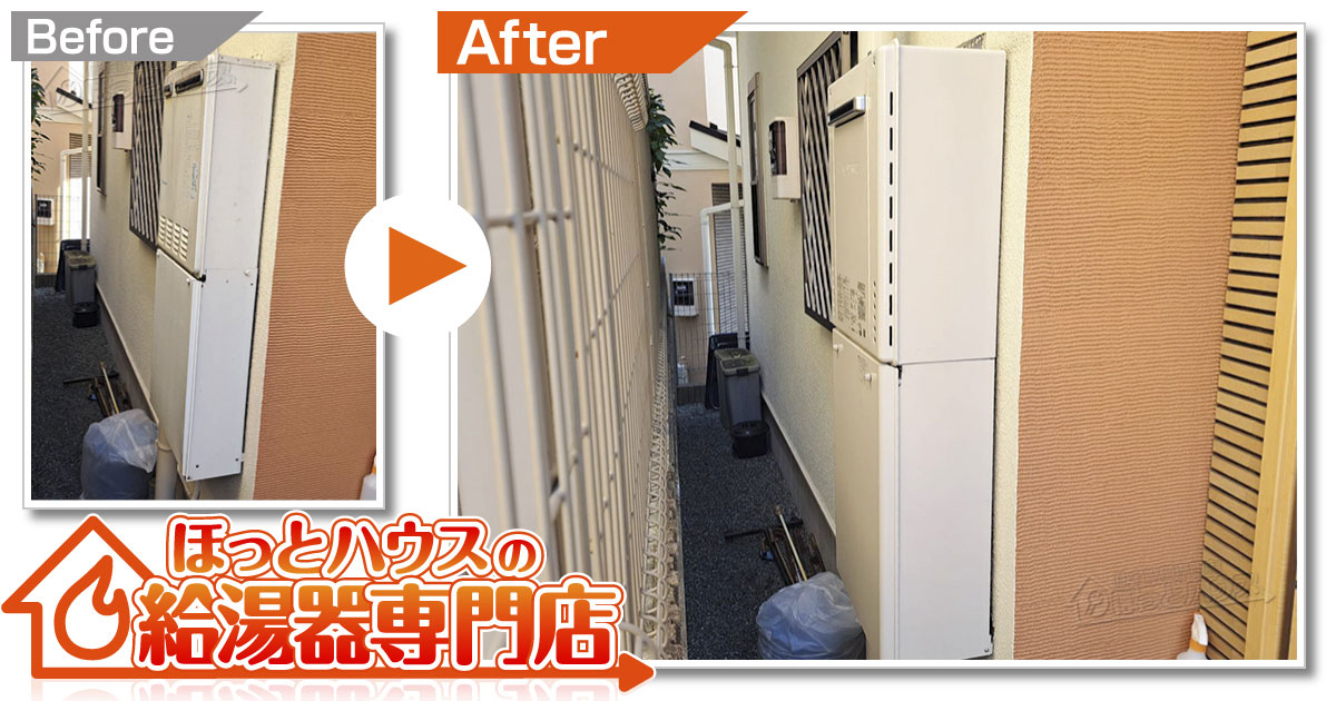 既存のガス給湯器はパロマ製「 FH-242AWD 」でしたが、ほっとハウスは、パロマ・リンナイ共に正規販売店のため、両商品ともお安くご提供することが可能ですが、今回はキャンペーンで大きくお値引きが可能なリンナイ製品をお勧めしました。