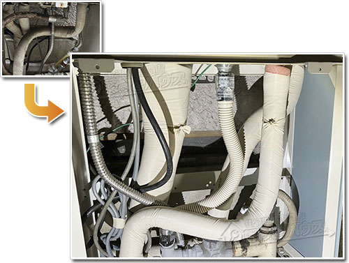 今回は排水経路をしっかり確認し、適切な位置へ再接続工事を実施しています。見えない部分ですが、こうした確認と是正が長期的な安心につながります。