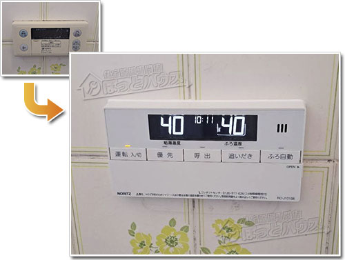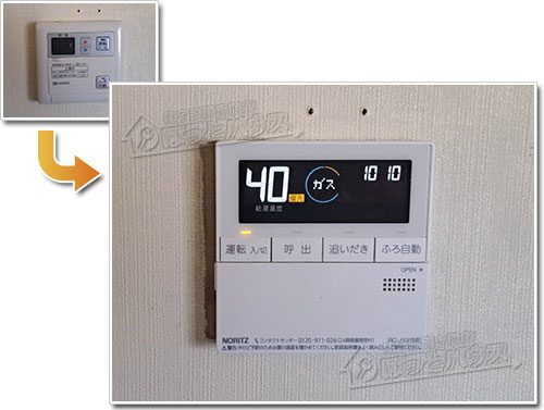 また、既存のノーリツ製ガス給湯器「 GT-2010SAR 」はオートタイプでしたが、お客様のご希望によりフルオートタイプに交換させていただきました。
