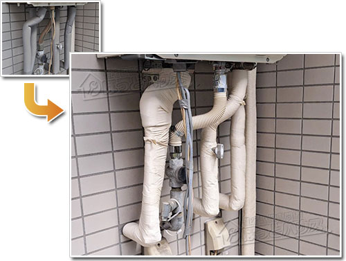 ※白い発泡スチロール製保温材は給湯器には使用できません。