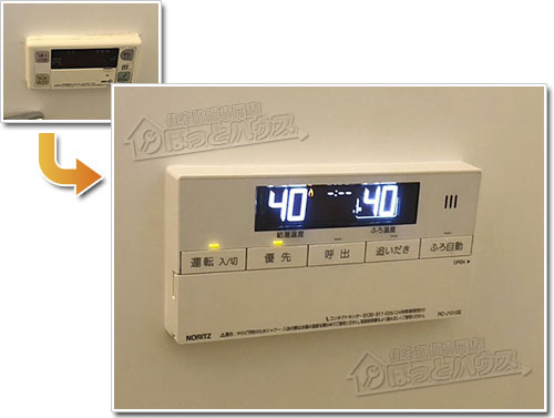 新型給湯器は従来のリモコンとの互換性がないため、浴室・台所リモコンも同時に交換しています。