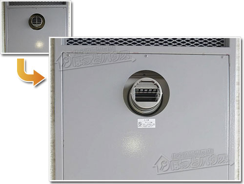 このような設置方式では、後継機種の選定を誤ると、排気筒の位置が既存の開口部と合わず、排気管が穴に干渉してしまい、そのままでは交換工事ができなくなるケースがあります。