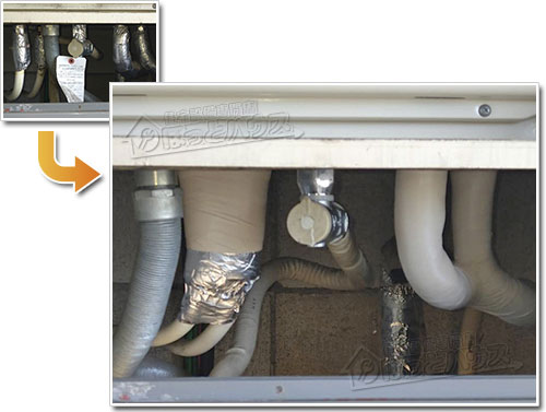 この作業は見た目を整えるためだけのものではありません。冬場の凍結を防ぎ、配管の劣化を抑えることで、給湯器全体を長く安定して使うための大切な工程です。