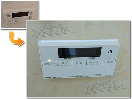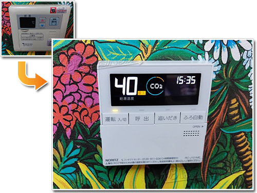 既存のノーリツ製ガス給湯暖房乾燥機「 GTH-2413AWXH 」 は、床暖房や浴室暖房乾燥機と連動している機種でしたが、今後、床暖房や浴室暖房乾燥機は使わないということでしたので、一般的なガス給湯器をご選択いただきました。