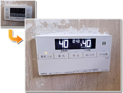 既存のガス給湯器はリンナイ製でしたが、ほっとハウスにて再安価でご提供が可能なノーリツ製のエコジョーズタイプをお勧めいたしました。