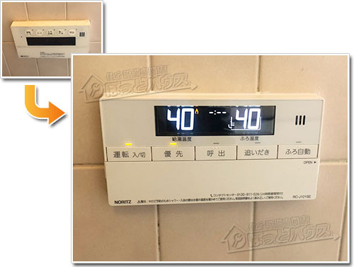 また、給湯器本体の交換に伴い、浴室・台所リモコンも新しいものへ同時に交換しています。新型リモコンは操作性が向上し、視認性やデザイン性も高く、日々の使い心地がより快適になります。