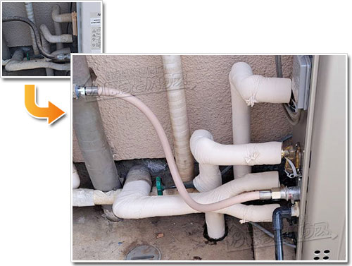 エコジョーズは、一般タイプ給湯器とは異なり、ガス給湯器本体で熱処理されたドレン水(中和した酸性水)が発生するため、排水処理が必要となります。
