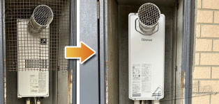 施工前 GX-1600ATS-1 [パーパス] 施工後 RUF-SA1615SAT-L(A) [リンナイ]