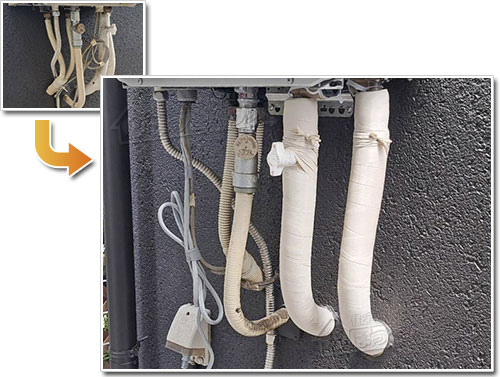 しかし、10年前の発売初期に設置されたため、垂れ流しにしている業者が殆どでしたので、しっかりと確認し再接続工事を行いました。