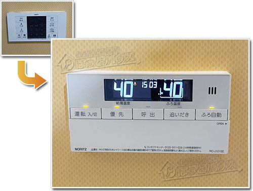 様邸にて、ノーリツ製ガス給湯器「 GT-2050SAWX 」を、ノーリツ製「 GT-C2072SAW-1 BL 」新型エコジョーズ20号タイプに交換させていただきました。