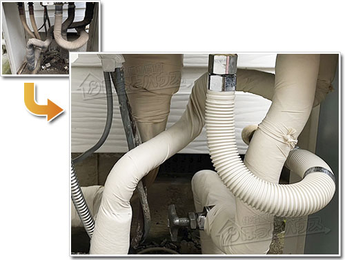 近年、コストや見た目を優先し、白いエアコン用の保温材を給湯器に使用する業者も見受けられます。