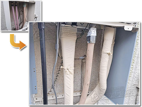 一部では、白いエアコン用発泡保温材を給湯器配管へ流用する事例が見られます。