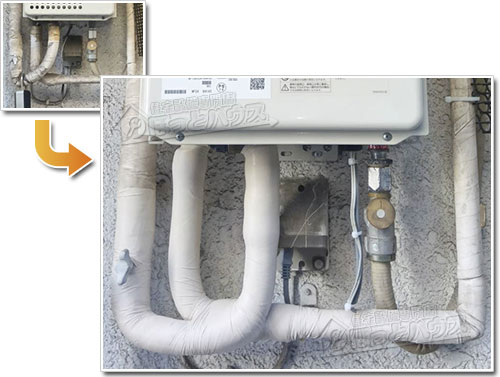 にお住まいのT様邸にて、ノーリツ製ガス給湯器「 GQ-2023WA 」をノーリツ製後継機種「 GQ-2039WS-1 」給湯専用タイプに交換させていただきました。