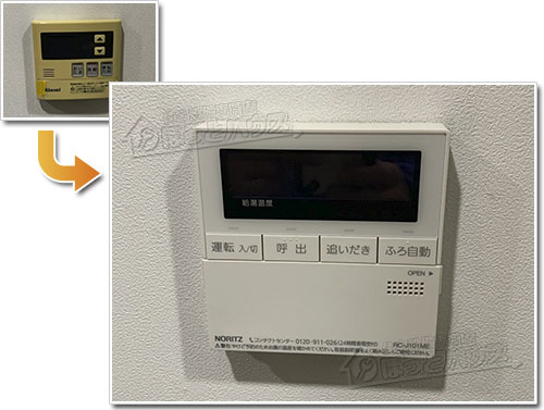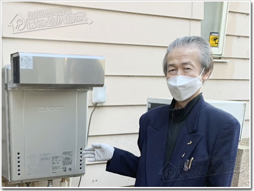 既存のガス給湯器は、ほっとハウスの施工事例集でも何度も登場している、スリムタイプ給湯器が設置されていました。