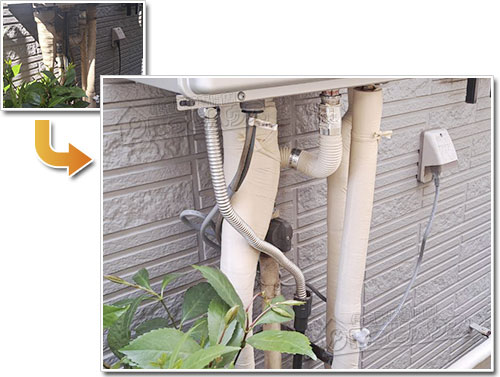 一部の業者は、給湯器に不向きな「エアコン用の白い保温材」を流用しています。
