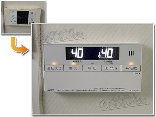 既存のガス給湯器は16号タイプでしたが、湯量のアップを期待して20号へ号数を上げて設置いたしました。