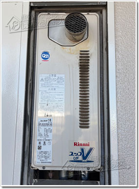 にお住まいのY様邸にて、リンナイ製ガス給湯器「 RUF-VS1615SAT-80 」を、リンナイ製後継機種「 RUF-SA1615SAT-L(A)80 」に交換させていただきました。