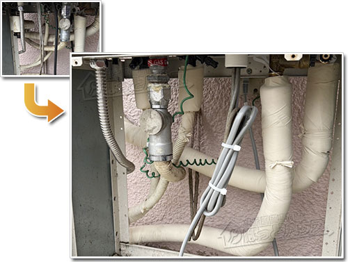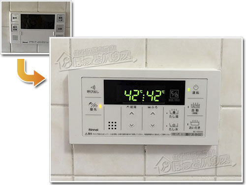 既存のリンナイ製ガス給湯暖房乾燥機「 RVD-E2405AW2-1(A) 」は、浴室暖房換気乾燥機に接続しているタイプでさらに24号エコジョーズという高グレード製品が設置されていましたが、今後、暖房機能は使用しないということと、ご家族様の人数が減るためガスの使用料が減るとのでしたので、暖房機能がなく、且つ、エコジョーズではない一般タイプ給湯器をお勧めいたしました。