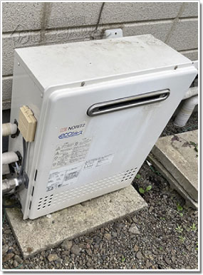 にお住まいのH様邸にて、ノーリツ製ガス給湯器「 GT-C2452SARX 」旧型エコジョーズオートタイプを、ノーリツ製「 GT-C2472AR-1 BL