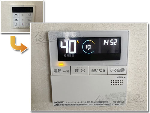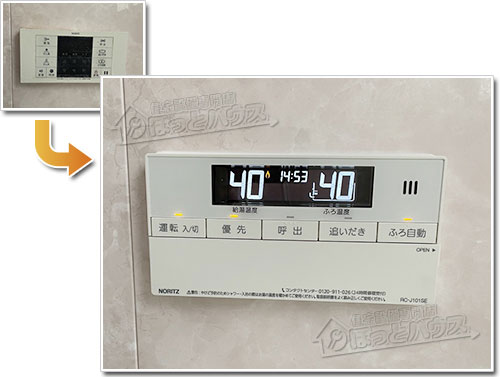 新型給湯器は従来のリモコンと互換性がないため、浴室・台所のリモコンもあわせて新型へ更新しています。