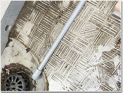 マンションのベランダ設置の場合は、雨水が流れる側溝まで塩ビパイプを這わせて流す工事が必要となります。